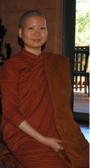 Même avant l’ordination en tant que bhikkhuni, en tant que simple samaneri j’avais déjà récolté les bienfaits énormes de la Sangha des bhikkhunis. Je me sens tellement reconnaissance envers le monastère de Nirodharam Bhikkhuni Arama, sous la direction plein de compassion de Phra Ajahn Nandayani, pour m’avoir donné l’opportunité précieuse d’être ordonnée en tant que samaneri, puis de m’avoir soutenue dans mon entraînement de nonne novice. C’est rare de trouver en Thaïlande un endroit qui soutient totalement les femmes qui suivent les dix préceptes. C’est également rare de trouver un lieu où prospère une communauté monastique entièrement féminine de grande taille. C’est un ressenti très différent de vivre en tant que femme dans un monastère uniquement composé de moines, ou de vivre en tant que femme, surtout en tant que nonne, dans un monastère de nonnes. À un niveau basique, il y a un tel sentiment de confort et de facilité. Plutôt que d’être toujours sur mes gardes, essayant d’être invisible et de ne pas déranger autant que possible, même quand j’étais juste une visiteuse laïque, je peux à Nirodharam me sentir à l’aise et libre d’aller n’importe où dans le monastère et avoir une relation décontractée avec les nonnes. Une fois nonne moi-même, je me suis sentie encore plus proche des autres nonnes, qui étaient pour moi comme des tantes ou des sœurs aînées ou cadettes.